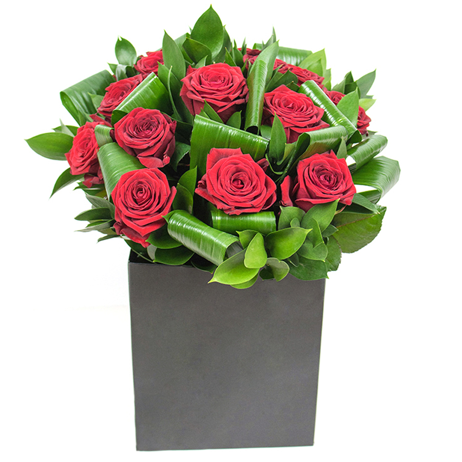 Bring refinement and beauty to your home with our exquisite bouquet featuring red roses, aspidistra leaves, and ruscus. Each flower is hand-selected for optimal freshness and quality, ensuring a long-lasting and stunning arrangement.