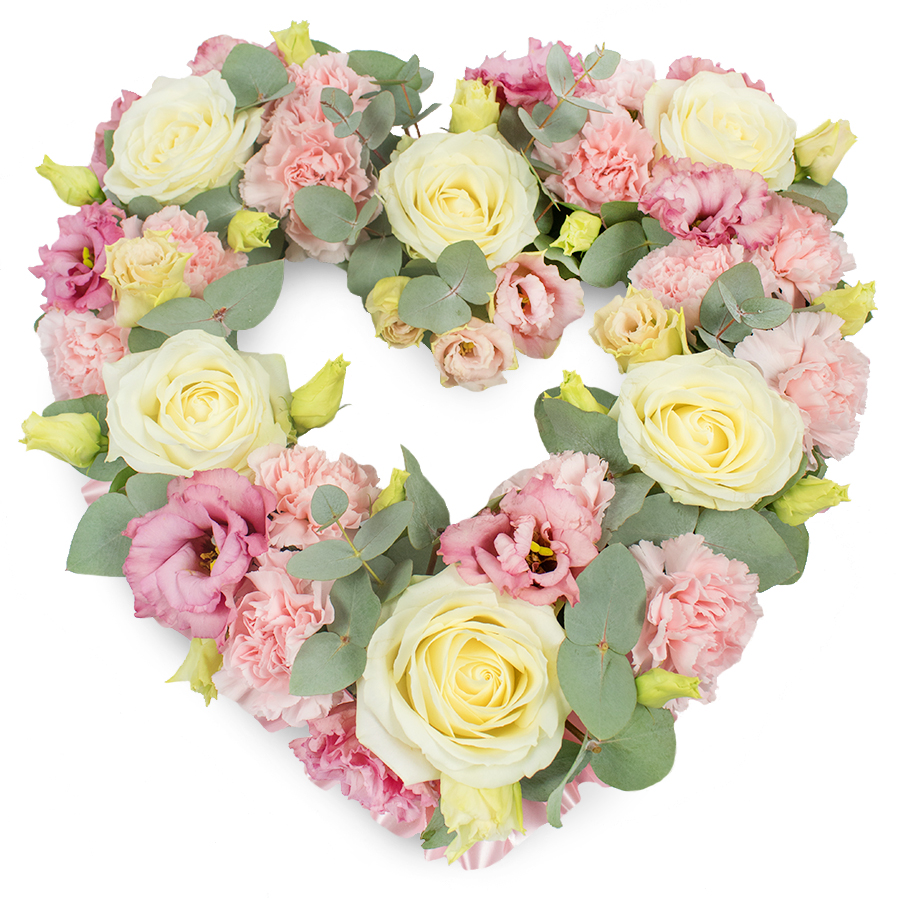 Presenting the Timeless White & Pink Heart Floral Arrangement, a perfect blend of elegance and emotion. This bouquet features exquisite white roses, lovely pink carnations, delicate pink lisianthus, and fragrant eucalyptus, all arranged into a beautiful heart shape to convey your deepest sentiments.
